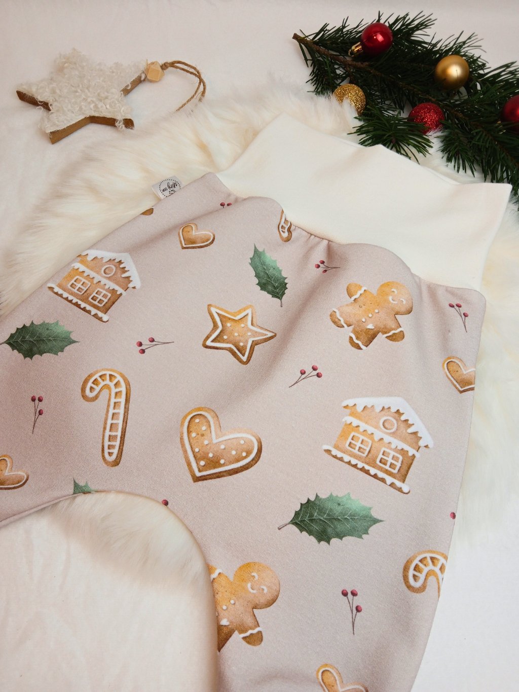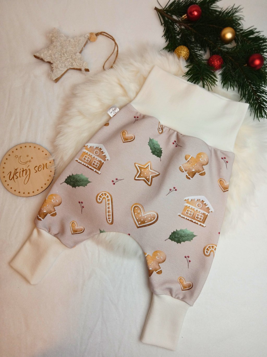 Baggy tepláčky s autorským vzorem perníčků jsou nutností každého miminkovského šatníku. Pohodlný a jednoduchý střih. Jsou ušity z jemné a prémiové BIO teplákoviny ve složení 95% biobavlna a 5% elastan. V pase není guma, miminko tak nic netlačí. Tepláčky jsou vhodné pro miminka s látkovou i jednorázovou plenkou. Díky sníženému kulatému sedu perfektně padnou na každý zadeček a dopřejí volnost v pohybu :-)