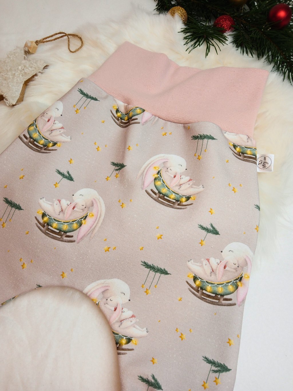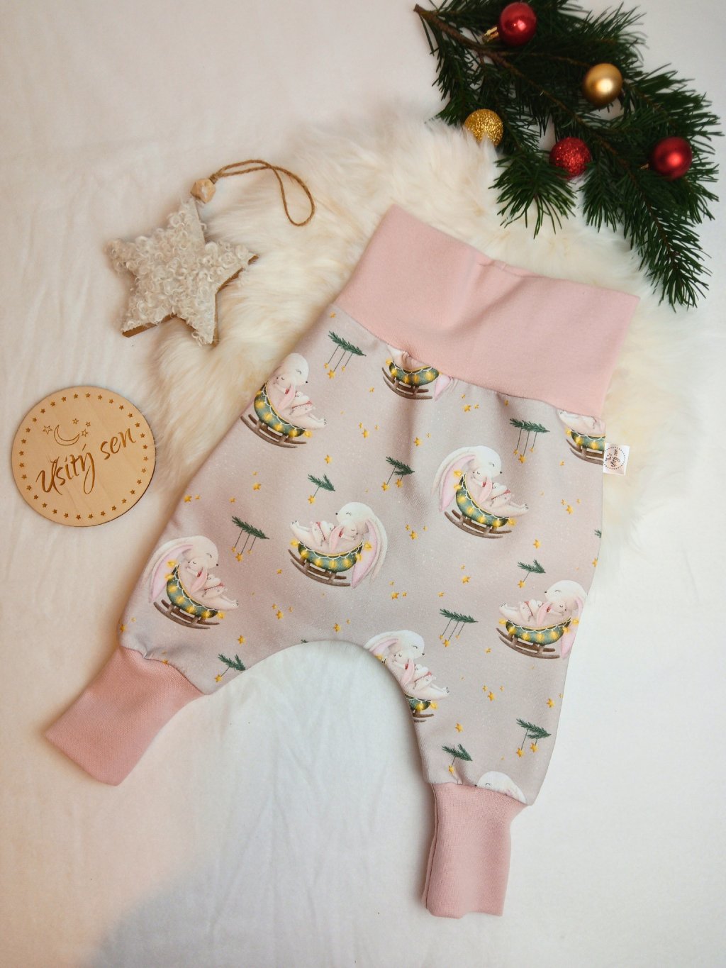 BAGGY TEPLÁČKY VÁNOČNÍ ZAJÍČEK V KOLÉBCE