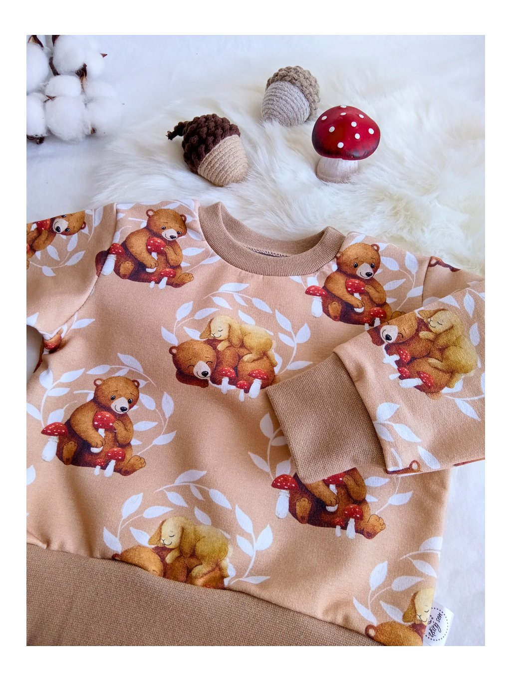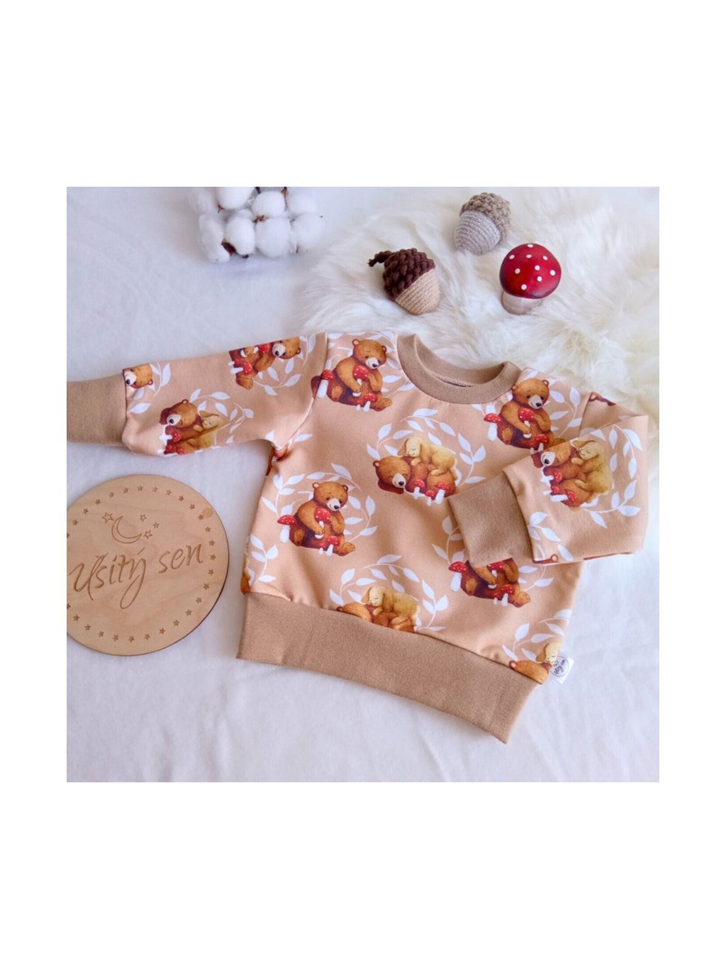 Dětská kojenecká mikinka s autorským vzorem medvídek z prémiové BIO teplákoviny ve složení 95% biobavlna a 5% elastan. Jemný, hebký a pružný materiál pro dokonalé pohodlí Vašich nejmenších. Pohodlný střih nebrání v pohybu. Mikinku pohodlně oblečete přes hlavičku díky pružnému nápletu. Šiju ve velikostech od narození do velikosti 92. Veškeré materiály jsou certifikované pro děti do 3 let a vhodné tak již od narození.