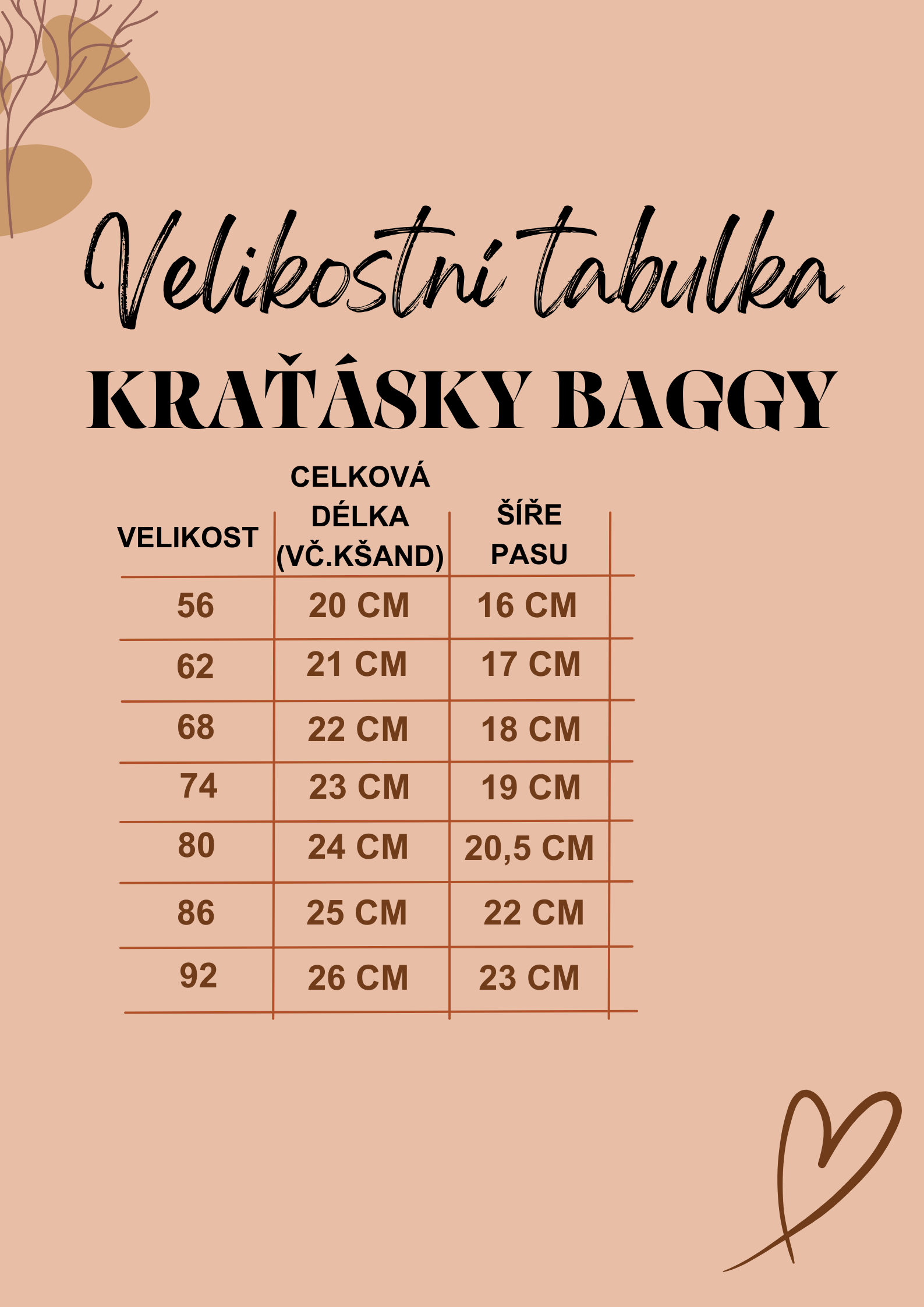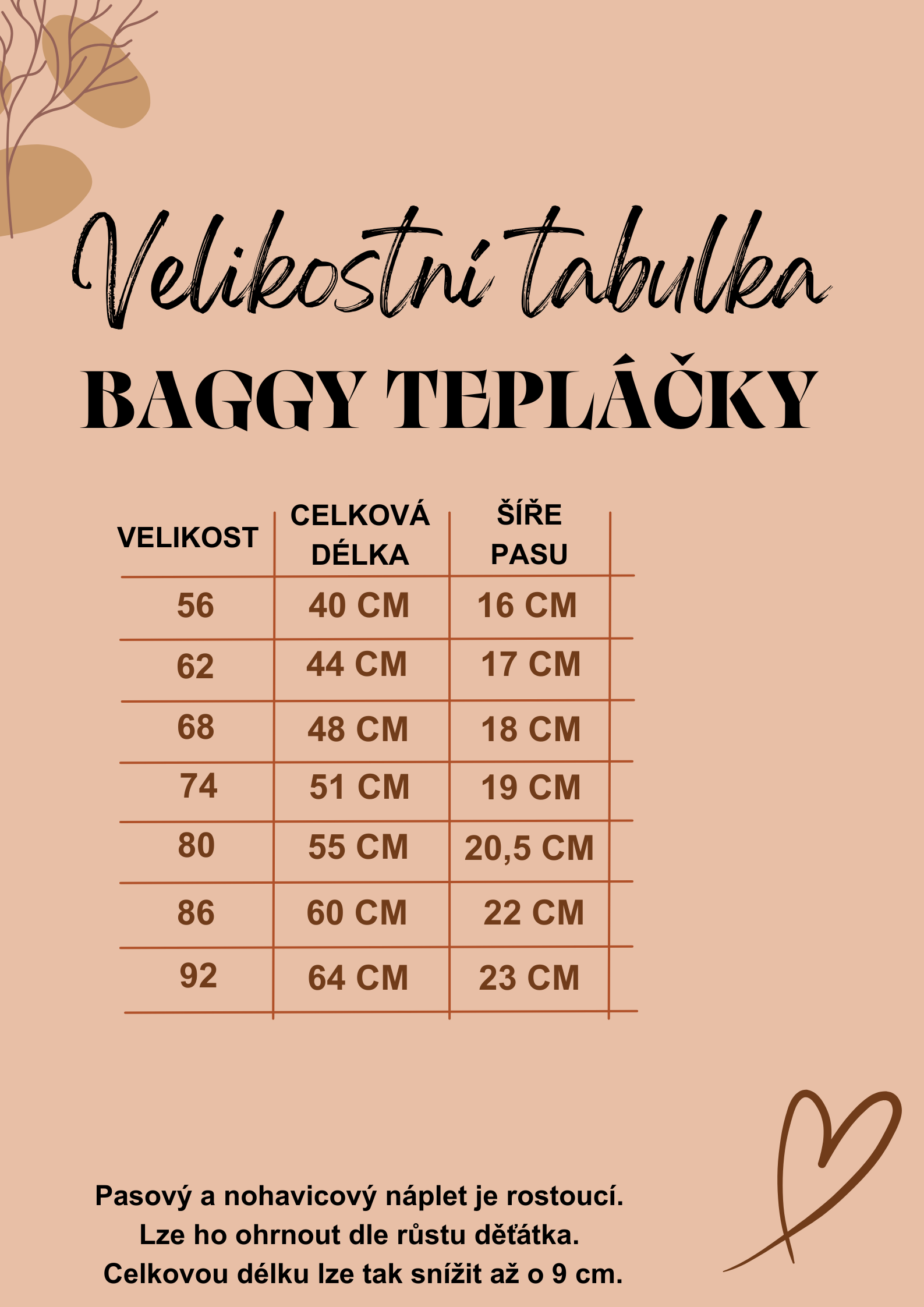 Velikostní tabulky Po rozkliknutí každé ikonky zobrazíte příslušnou tabulku velikostí :-) ČEPIČKA S OUŠKY ČELENKA S MAŠLÍ BAGGY TEPLÁČKY LEGÍNKY S KŠANDAMI BAGGY KRAŤÁSKY MIKINKA