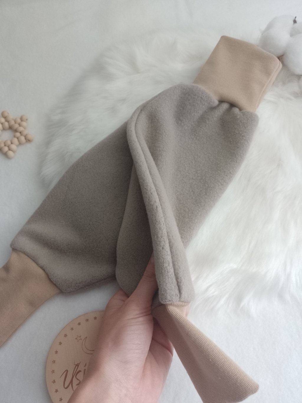 Jsou ušity jako rostoucí. To znamená, že pasový náplet je vyšší, stejně tak náplety na nohavičkách. Lze je tak pohodlně ohrnout a přizpůsobit dle růstu miminka. Tepláčky tak vydrží další 1-2 velikosti. Je to jako kdyby jste koupili 2-3 kusy tepláčků.
