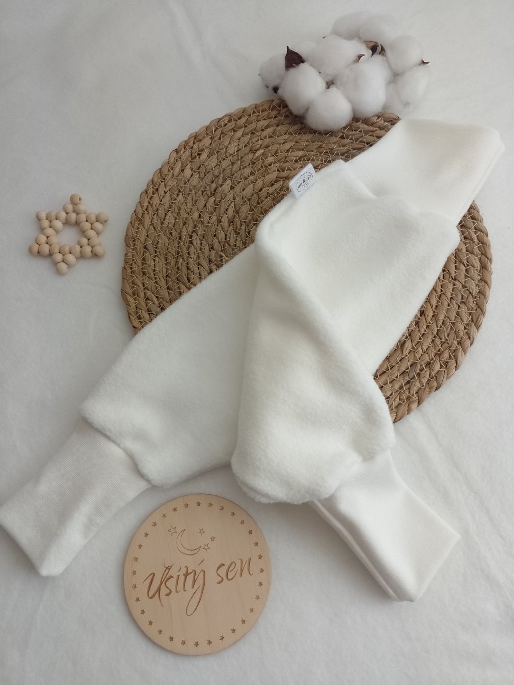 Jsou ušity jako rostoucí. To znamená, že pasový náplet je vyšší, stejně tak náplety na nohavičkách. Lze je tak pohodlně ohrnout a přizpůsobit dle růstu miminka. Tepláčky tak vydrží další 1-2 velikosti. Je to jako kdyby jste koupili 2-3 kusy tepláčků.