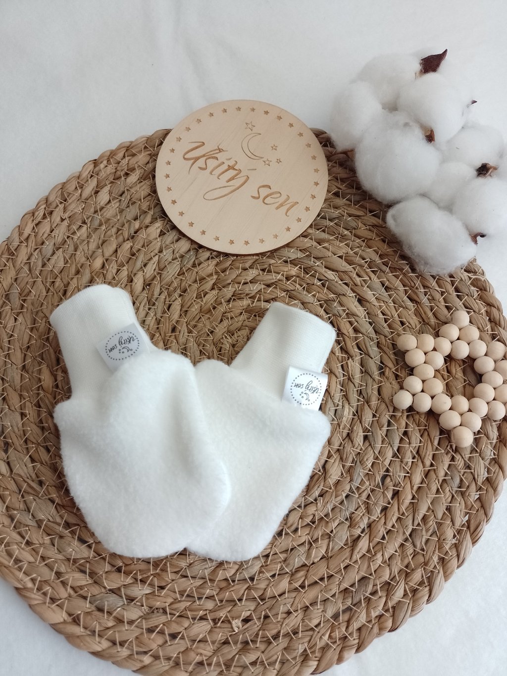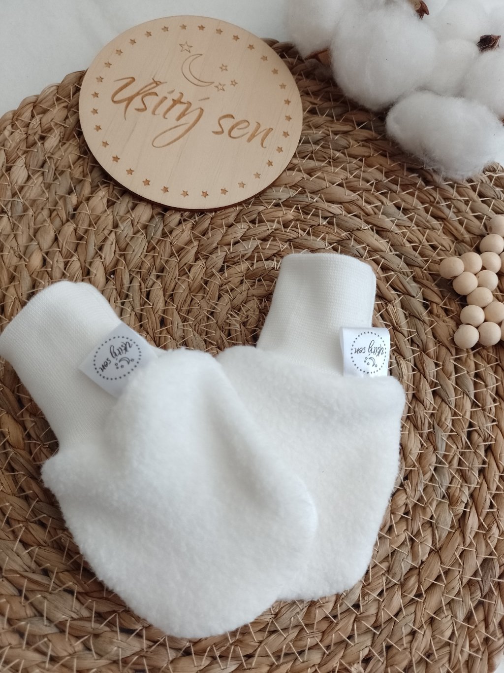 Hřejivé rukavičky jsou nutností v každé výbavičce pro miminko a to hlavně u novorozenců. Jsou opravdu jednoduchého a praktického střihu bez palečku. Jsou ušity zhřejivého a hebkého fleecu ve složení 100 % bavlna. Díky nápletu drží rukavičky na zápěstí ručičky a nesklouzávají. Ideální volba do zimních dnů. Ve velikostech od narození do 12 měsíců.
